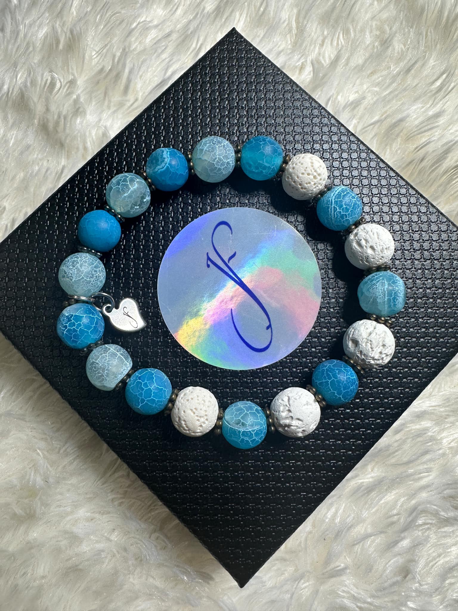 Natural Stone Lake Blue Weathered Agate and White lava beads